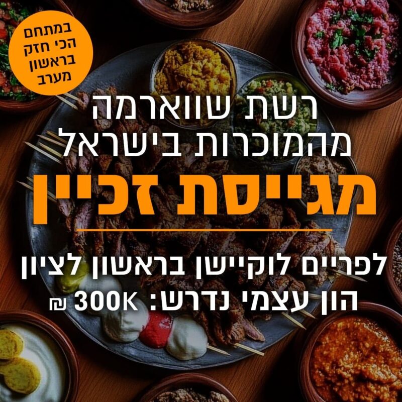 ⭐ כולל מענק הקמה גבוה במיוחד בשווי 500 אלף ש”ח (250 מענק + 250 הלוואה)